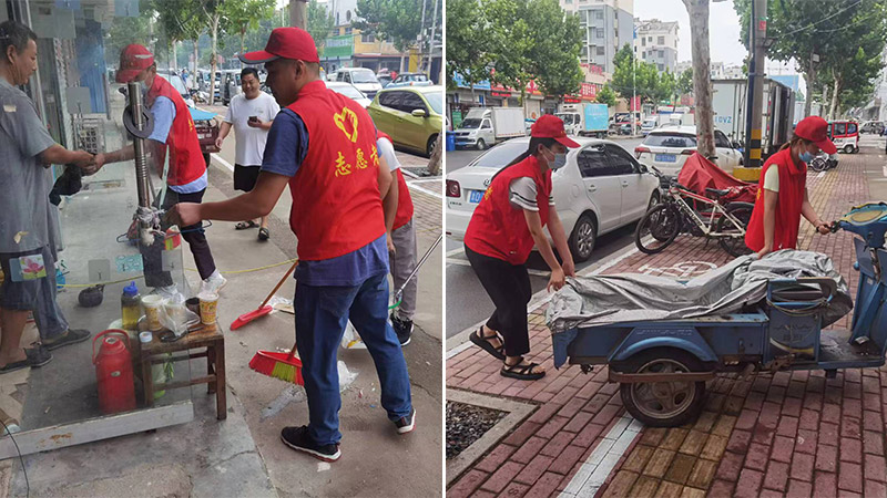 在緊鑼密鼓創建全國文明城市之際,新材公司近期組織黨員、團員和優秀職工代表等15人為誌願者,對嶧城區金牛市場部分路段進行幫包,對責任區內亂堆亂放的雜物、垃圾、綠化帶等衛生進行了整理,同時幫助門市租戶做好“門前三包”,做到了全覆蓋,全麵清理,確保不留衛生死角,對於市民車輛亂停亂放行為進行勸說引導,幫助老弱病殘人員等義務活動。